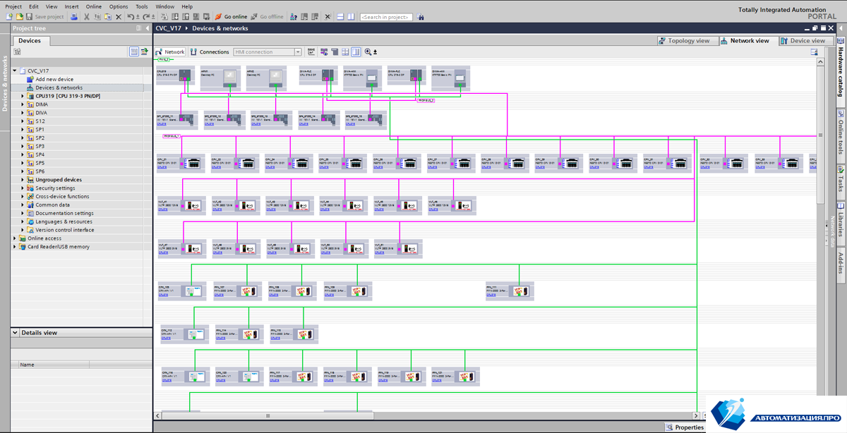 Аппаратно-технический комплекс построен на оборудовании SIEMENS (ПЛК, панели оператора, станции удалённого ввода-вывода), FESTO (станции пневмораспределения), DANFOSS (преобразователи частоты), состоит из нескольких многосекционных шкафов управления, соединенных комбинированной промышленной сетью PROFIBUS/PROFINET.